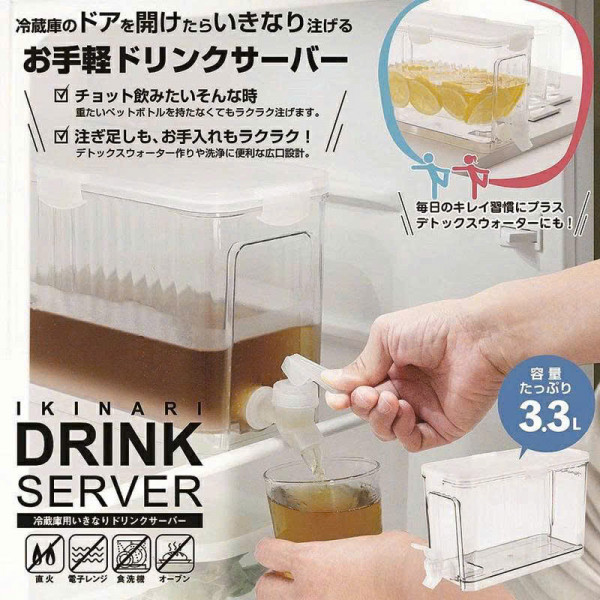 - Dung tích: 3,3L - Trọng lượng: 480g - Kích thước: Rộng 127 x Sâu 305 x Cao 167 mm - Chất liệu: Thân: PET; Nắp, cần gạt, vòi, chốt: Polypropylene; Gioăng, nắp vòi: Cao su silicon - Công dụng: + Chiếc bình xinh xinh này phù hợp để nước lọc, các loại nước hoa quả, detox,...để tại nhà, mang đến công ty hay mang đi dã ngoại. Kích thước vừa xinh để trong tủ lạnh, có vòi rót tiện lợi. + Dung tích to 3,3L phù hợp cho gia đình 4-6 người hoặc phù hợp cho các bữa tiệc nho nhỏ. + Chất liệu dày dặn, đặc biệt không hề có mùi, chịu nhiệt -20 độ đến 120 độ C an toàn khi sử dụng. + Không hề có tình trạng rò rỉ nước nhờ thiết kế gioăng của cả phần vòi rót và nắp bật giúp - Lưu ý: Không sử dụng trong lò vi sóng, trong máy rửa chén hoặc trong lò nướng. - Hàng nhập khẩu trực tiếp từ Nhật, sản xuất tại Trung Quốc.