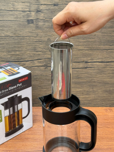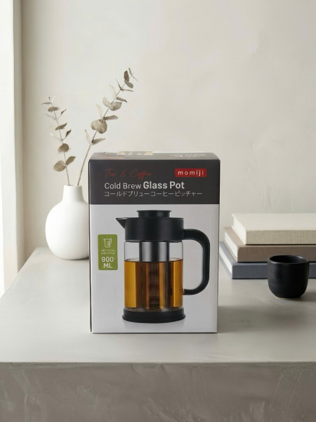 Bình pha trà, cafe Cold Brew thủy tinh có lõi lọc inox Momiji 900ml