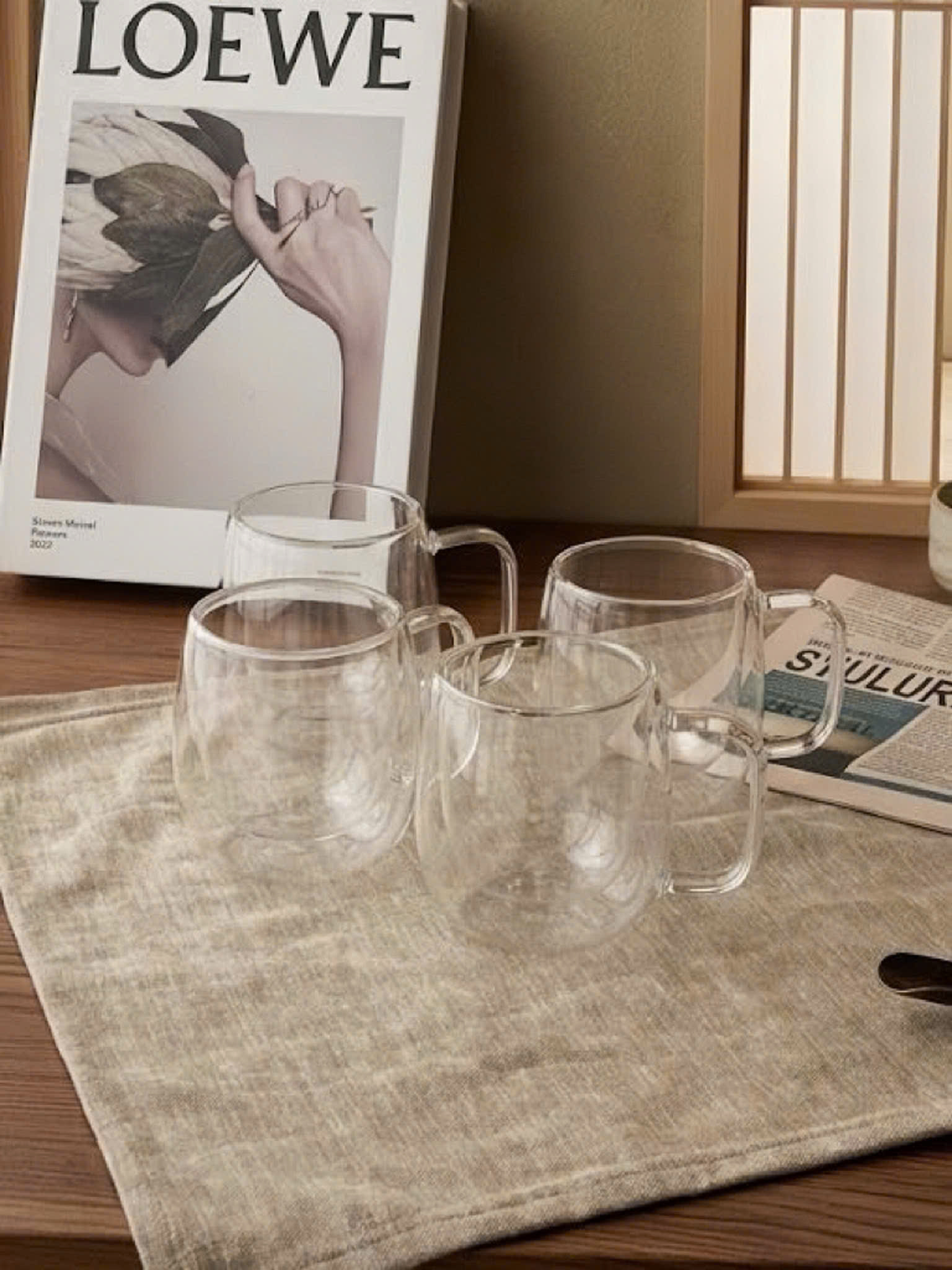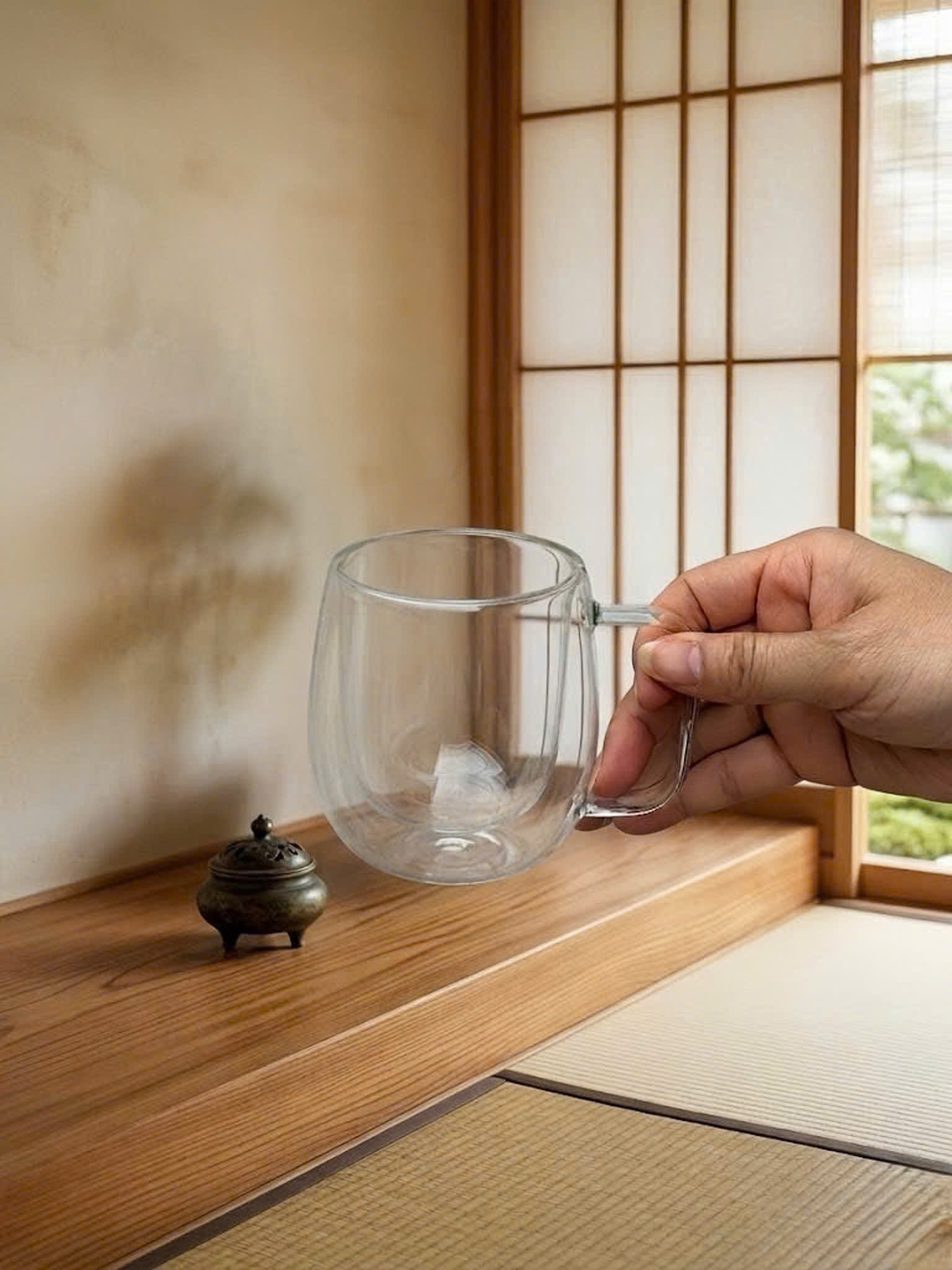 Bộ 4 cốc thủy tinh 2 lớp cách nhiệt Momiji 250ml (có tay cầm)
