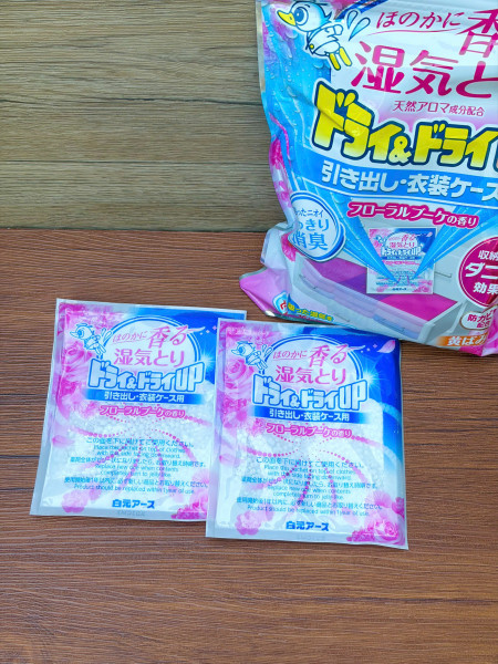 - Thành phần: canxi clorua, chất giữ ẩm có nguồn gốc tự nhiên, hương liệu, chất chống nấm mốc, mạt bụi (có nguồn gốc từ wasabi) - Quy cách: gói gồm 12 túi nhỏ - Công dụng: để trong các ngăn tủ quần áo hoặc tủ đựng đồ giúp hút ẩm, giữ cho tủ quần áo, tủ đồ luôn khô thoáng; khử mùi hôi khó chịu với hương hoa thơm ngát; ức chế sự phát triển của nấm mốc; ngăn ngừa quần áo bị ố vàng trong thời gian cất giữ - HDSD: Lấy sản phẩm ra khỏi túi ngoài và đặt lên quần áo, mặt hút ẩm (mặt trắng) hướng lên trên. Khi toàn bộ sản phẩm đã chuyển sang dạng thạch, hãy thay thế bằng sản phẩm mới - Hàng nhập khẩu trực tiếp từ Nhật, sản xuất tại Thái Lan - Thương hiệu Hakugen là thương hiệu về hút ẩm số 1 tại Nhật Bản.