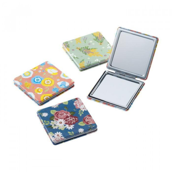 - Kích thước hộp: 80 x 80 x 13 mm - Chất liệu: Kính, ABS, Thép, Nam châm - Màu sắc/Hoa văn: Trộn 3 màu - Công dụng: gương soi trang điểm 2 mặt dạng gập, kiểu dáng nhỏ gọn dễ dàng bỏ túi mang theo. Bọc ngoài giả da sang trọng với họa tiết hoa văn trang nhã, xinh xắn rất phù hợp cho các chị em mang theo bên mình. - Hàng nhập từ Nhật, sản xuất tại Trung Quốc.