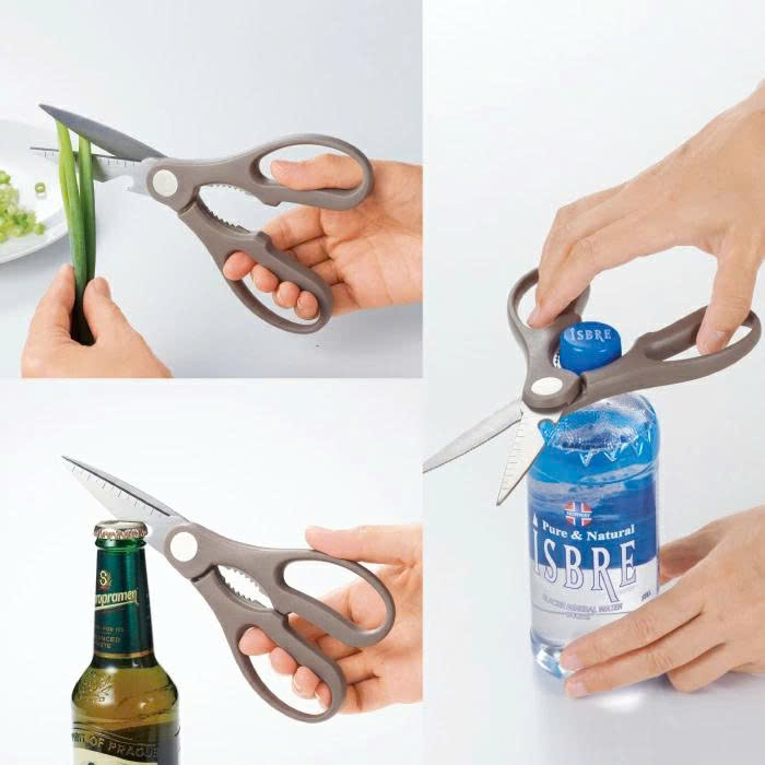 - Kích thước: Kéo/200 x 87 mm, Hộp/191 x 82 mm - Bao bì: Hộp quà tặng. Có 2 lựa chọn màu sắc: Nâu và Xanh - Chất liệu: Thép không gỉ, PP, Nam châm - Công dụng: Chiếc kéo nhà bếp đa năng kèm vỏ đựng nam châm có thể gắn tủ lạnh giúp bạn luôn ghi nhớ vị trí khi cần sử dụng ngay và rất an toàn khi để ngoài tầm với của trẻ nhỏ. Ngoài chức năng cắt thực phẩm thông thường còn dùng để mở nút chai bia, nắp nhựa. - Hàng nhập từ Nhật, sản xuất tại Trung Quốc.