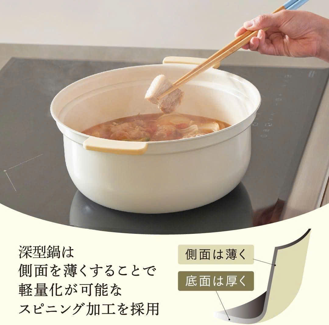 Nồi này là dòng nhôm đúc xịn sò, đúc nguyên khối từ thân, tay cầm. Nồi sử dụng công nghệ vật liệu siêu nhẹ nên dùng rất trơn láng, rất dầy dặn nhưng không bị nặng khi bê nồi lên bếp, không mệt khi vệ sinh. Hot trend bên Nhật năm nay đó ạ!