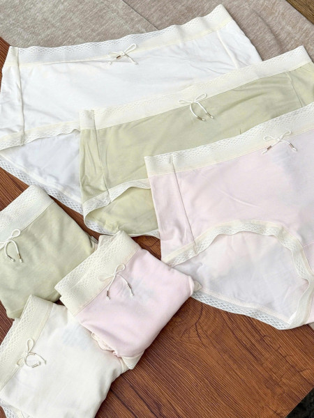 Quần lót nữ cạp cao viền ren Modal Comfy với chất liệu 95% modal, 5% Spandex có đặc tính siêu mềm mịn, thoáng khí, thấm hút mồ hôi cực tốt (hơn cotton 50%), nhanh khô, chống nhăn, chống co rút, bền màu, kháng khuẩn và thân thiện môi trường. - Đặc điểm nổi bật: + Viền ren chất liệu co giãn 4 chiều, thoải mái và linh hoạt khi mặc và vận động, không lo hằn da, ôm form mông, không bai, không xù. + Cạp cao nên không lo lộ vòng bụng. Freesize từ 45 - 62kg - Chất liệu: Vải chính: 95% Modal, 5% Spandex; Lớp lót: 85,5% Viscose, 8,1% Lụa, 3,8% Spandex, 2,6% Polyester - Trọng lượng: 180gr - Màu sắc: 3 màu pastel be/hồng/xanh thời trang. - HDSD: Sử dụng quần lót Modal Comfy hàng ngày để đảm bảo sự thoáng khí và thoải mái. Có thể giặt bằng nước lạnh hoặc ấm với chất tẩy rửa nhẹ, ưu tiên giặt tay hoặc giặt máy ở chế độ nhẹ nhàng. Không nên sử dụng nước nóng, chất tẩy mạnh, hoặc vắt xoắn mạnh. Khi phơi, hãy tránh ánh nắng trực tiếp và nhiệt độ cao, thay vào đó phơi trong bóng râm, thoáng mát hoặc sấy ở nhiệt độ thấp.