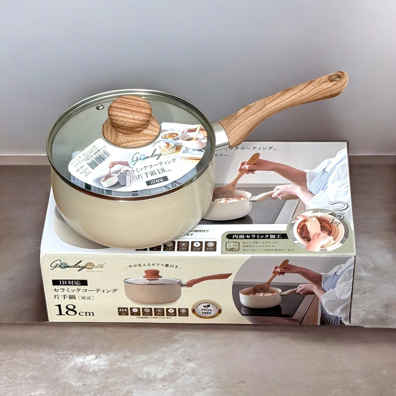 - Chất liệu: thân hợp kim nhôm phủ chống dính ceramic, đáy từ bằng thép không gỉ (18% crom, dày 2.3 mm), tay cầm nhựa phenolic dạng vân gỗ, nắp kính cường lực. - Kích thước: Đk 18cm * cao 9cm * chiều dài (cả tay cầm) 35.5cm. Dung tích tối đa 2.0L. - Công dụng: Quánh được làm bằng hợp kim nhôm chắc chắn, bề mặt chảo phủ lớp chống dính ceramic không chứa PFOA an toàn và thân thiện. Đường kính 18cm kèm nắp nên rất linh hoạt và dễ sử dụng, hoàn hảo cho các món hầm và súp, nấu mỳ, nấu bột, nấu cháo. Có thể dùng cho mọi loại bếp (Bếp gas, bếp điện từ, bếp hồng ngoại, bếp điện…). Thiết kế tông màu nhẹ nhàng hài hòa với nhà bếp. - Lưu ý: Sau khi nấu xong, để nồi/chảo nguội từ từ. Tránh xả nước lạnh đột ngột để bảo vệ lớp phủ ceramic, ngăn ngừa sốc nhiệt gây nứt, hỏng lớp chống dính ceramic. - Hàng thương hiệu Kakusee nổi tiếng của Nhật, nhập khẩu từ Nhật, sản xuất tại Trung Quốc