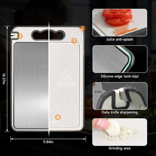 Thớt 2 mặt inox 304 và nhựa lúa mạch PP kháng khuẩn cao cấp Mirai 25x36cm