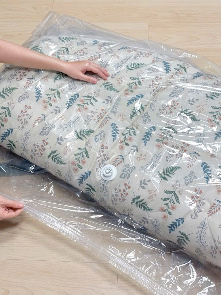 Túi cỡ lớn nên đựng đồ siêu khủng, chăn thu đông mà e đựng được 4 chăn hút trong 1 túi vẫn lọt thỏm. Tính ra lại kinh tế hơn nhiều so với các set của TQ toàn cỡ bé ti ti. Túi ko kèm bơm, các chị có thể dùng máy hút bụi để hút trực tiếp luôn ạ!