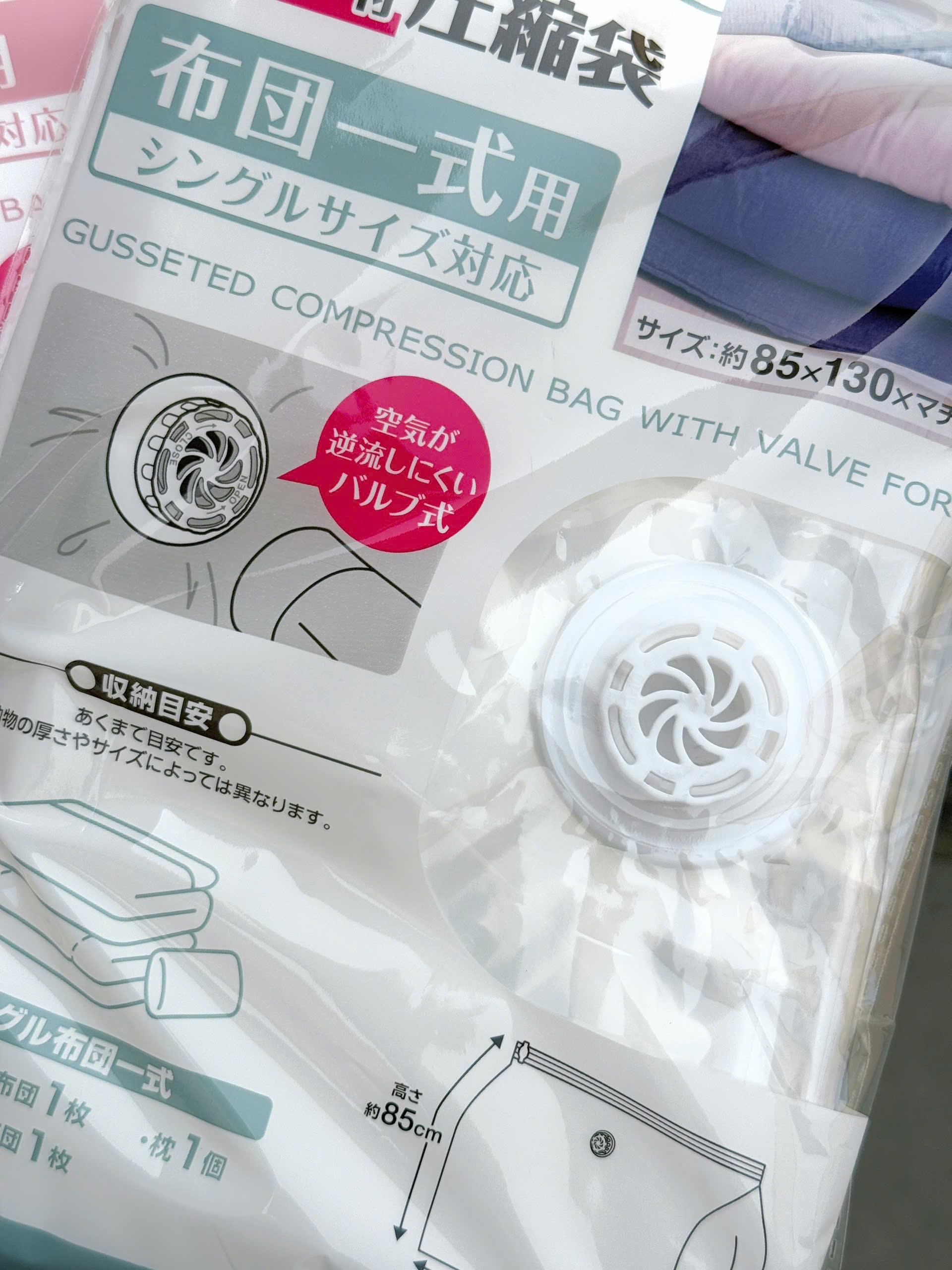 Túi hút chân không đựng quần áo, chăn màn hình hộp có van Okazaki 85x130x56cm